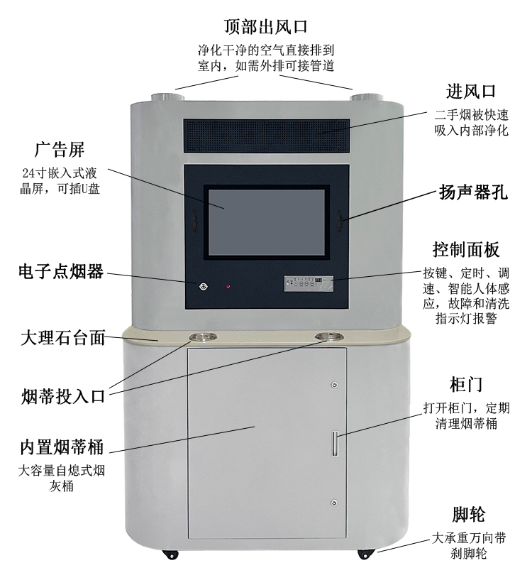 ÉêÈðÎüÑÌÊÒ¿ÕÆø¾»»¯»ú£¬ÄÚÖøßѹ¾²µç³¡£¨µç×Ó¼¯³¾ÊÒ£©+²ãÁ÷¹ýÂËÍø+»îÐÔÌ¿Îü¸½+¸ºÑõÀë×Ó¹¦ÄÜ£¬¸ßЧ¾»»¯ÇåÐÂÊÒÄÚ¿ÕÆø¡£
