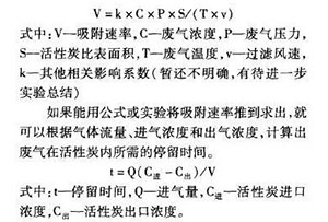 »îÐÔÌ¿¹ýÂË·çËÙÔÚ¡¶Îü¸½·¨¹¤ÒµÓлú·ÏÆøÖÎÀí¹¤³Ì¼¼Êõ¹æ·¶¡·(HJ2026¡ª2013)ÖУ¬¿ÉÒԲ鵽¹Ì¶¨´²Îü¸½£¬²ÉÓÿÅÁ£×´Îü¸½¼ÁÆøÌåÁ÷ËÙÒ˵ÍÓÚ0.6m/s£¬²ÉÓÃÏËά״Îü¸½¼ÁÆøÌåÁ÷ËÙÒ˵ÍÓÚ0.15m/s£¬²ÉÓ÷äÎÑ×´Îü¸½¼ÁÆøÌåÁ÷ËÙÒ˵ÍÓÚ1.2m/s;¹ýÂËÃæ»ý¼´¿É¸ù¾Ý´¦Àí·çÁ¿ºÍ¹ýÂË·çËÙ¼ÆËãµÃ³ö¡£ ÉêÈðÑÌÎí¾»»¯Æ÷É豸µÄ̼²ãºñ¶ÈµÄÉè¼Æ£¬¾ÍÐèÒª½áºÏ·ÏÆøµÄ²úÉúŨ¶È¡¢È¥³ýЧÂÊ¡¢»îÐÔÌ¿µÄ¸ü»»Ê±³¤µÈÒòËØ½øÐС£Ò»°ã»á²ÉÓÃ2ÖÖ·½Ê½¼ÆËã̼²ãºñ¶È£ºÒ»ÊÇ£¬¸ù¾Ý»îÐÔÌ¿ÐèÒªµÄ¸ü»»ÖÜÆÚ£¬À´È·¶¨»îÐÔÌ¿µÄ×ܵÄ×°ÌîÁ¿£¬Ö®ºóÔÙ¸ù¾Ý¹ýÂËÃæ»ý¼ÆËã̼²ãºñ¶È;¶þÊÇ£¬ÔÚ¿¼ÂÇÎü¸½Ïä³ß´ç´óС¡¢Ì¼²ã·ç×è¡¢¹ýÂË·çËÙµÄÇé¿öÏ£¬ÒÀÕÕ¾ÑéÖ±½ÓÑ¡¶¨Ò»¸öºñ¶ÈÖµ¡£ ÒÔÉϲÎÊý»ùÓÚ»îÐÔÌ¿µÄÎü¸½ËÙÂÊΪһ¸öºã¶¨Öµ»òÕßÎÞÏ޴󵽿ɺöÂÔ²»¼ÆµÄÇé¿öÏÂÉè¼ÆµÄ¡£¶øÊµ¼ÊÖÐÎü¸½ËÙÂÊĿǰ»¹²»ÄÜÓÐЧ¼ÆËã³ö£¬²»Í¬µÄ̼¡¢²»Í¬µÄ¹ýÂË·çËÙ¡¢²»Í¬µÄ·çѹµÈµÈ£¬¶¼»áÓ°Ïì̼²ãµÄËÙÂÊÎü¸½ËÙÂÊ¡£ ʵ¼ÊÖÐÓ°Ïì̼²ãÎü¸½ËÙÂʵÄÒòËØÓУºÎü¸½ÖÊŨ¶È¡¢·çѹ¡¢Î¶ȡ¢»îÐÔÌ¿±È±íÃæ»ýµÈµÈ£¬¸÷Ìõ¼þ²ÎÊýÖ®¼äµÄ¹ØÏµ¿ÉÒÔ±íʾΪÒÔϹ«Ê½£º