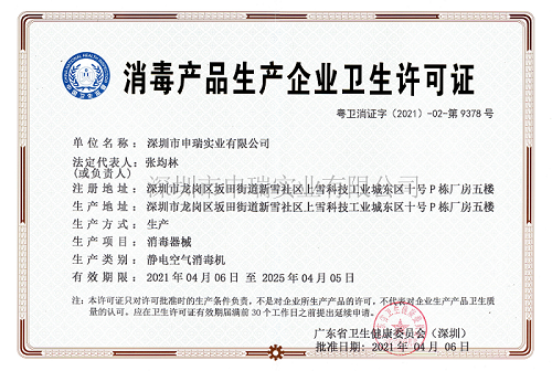 面对疫情防控的严峻形势,申瑞积极响应政府号召和要求,高度关注疫情进展,全力支持抗击疫情。在国家相关政策支持下,申瑞严格遵守消毒产品生产企业的法律要求申请办理相关资质,并于近日获批广东省卫生健康委员会颁发的《消毒产品生产企业卫生许可证》,生产类别为静电空气消毒机。